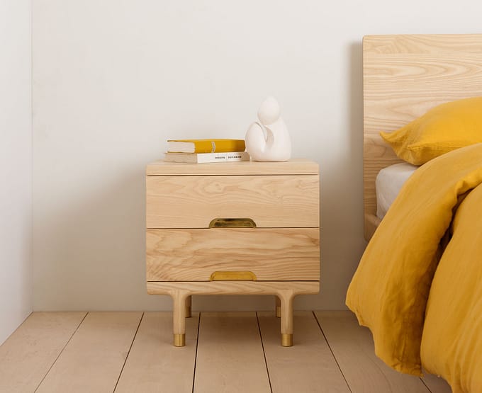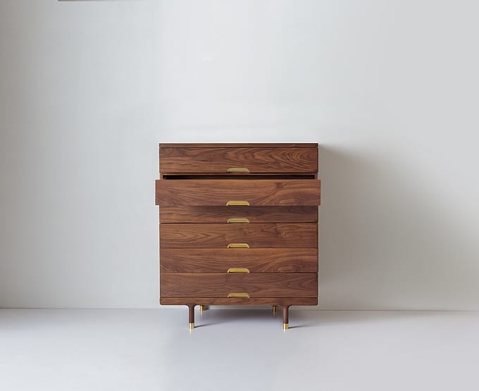 Modern purity of form rendered in hardwood and brass