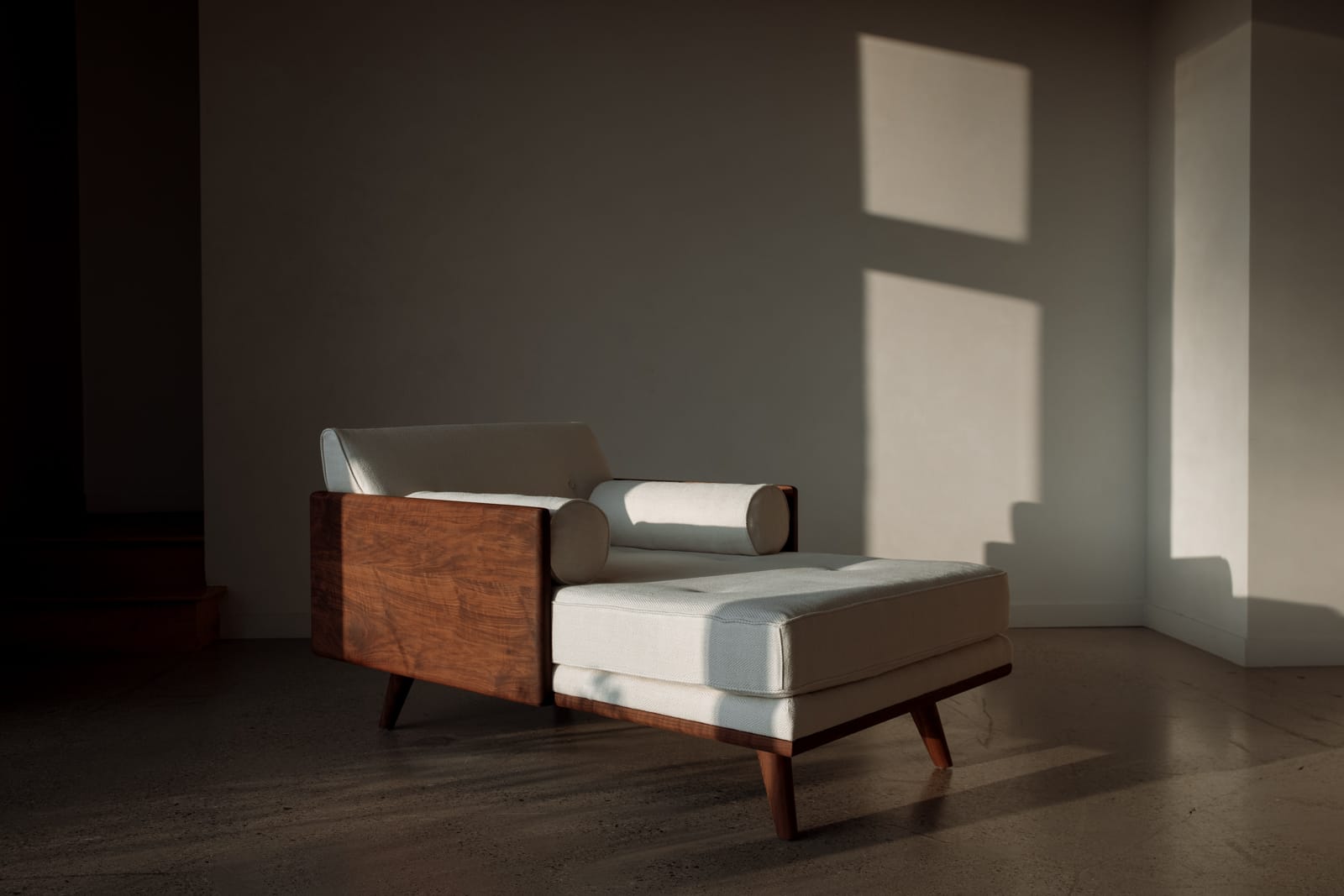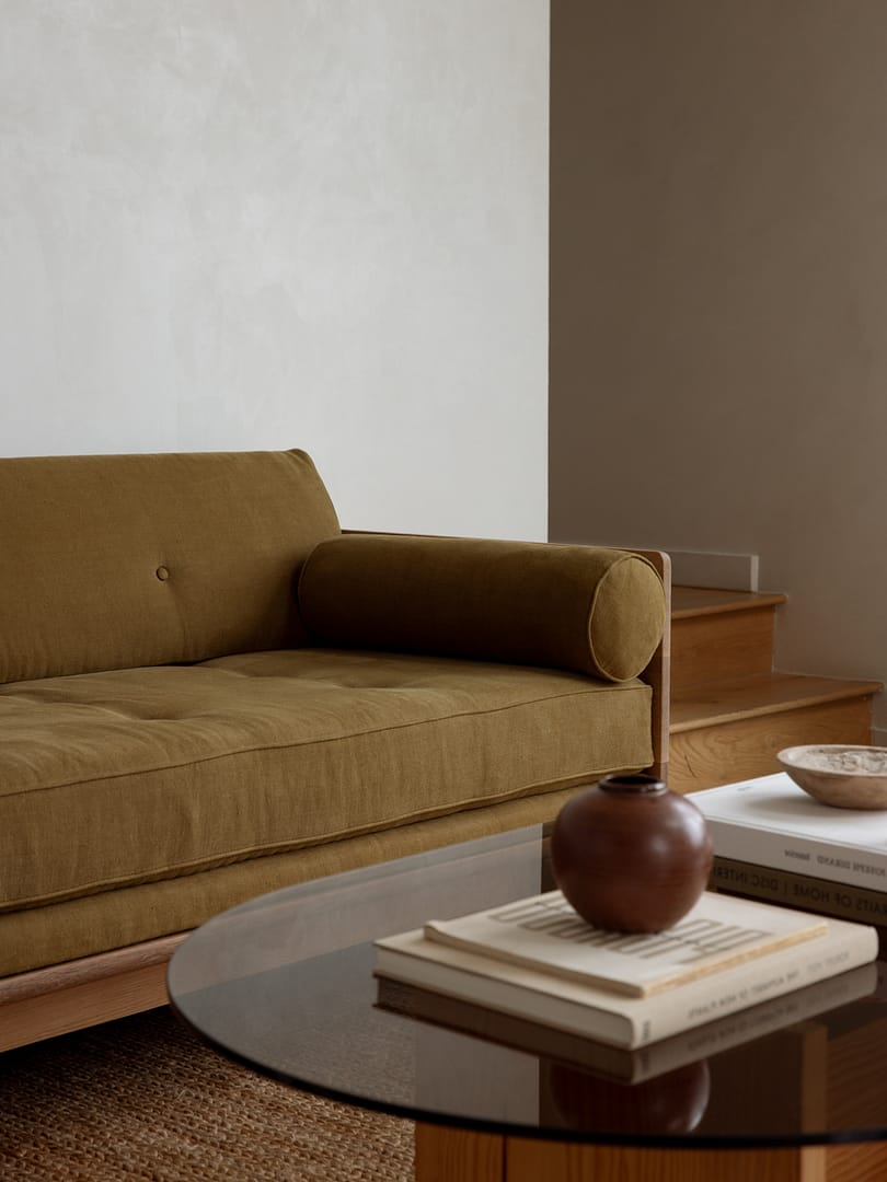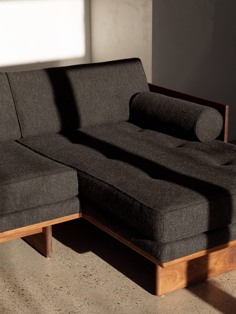 Crafted from oil-rubbed domestic hardwoods and upholstered in premium all-natural materials, the collection balances structural clarity with material warmth. Solid wood frames are intentionally exposed and considered from every angle, giving each piece a sculptural presence within a room. Optional brass detailing introduces a subtle mid-century reference, refined through a contemporary lens.