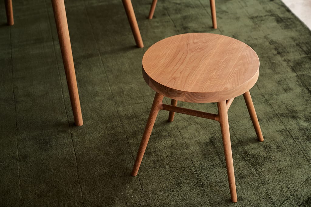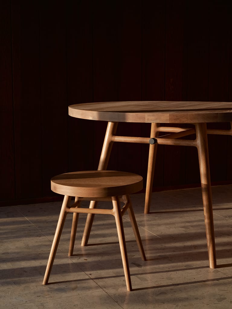 The Bough Stool is constructed of solid American hardwood (Ash, Walnut, or White Oak) featuring complex, concealed joints of surprising strength. Designed to work on its own or as an end or side table. Wood is hand-rubbed and finished with Kalon Bare Finish, a natural oil/wax finish painstakingly developed to preserve the delicate and luminous beauty of raw wood.