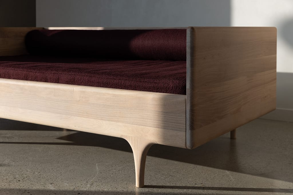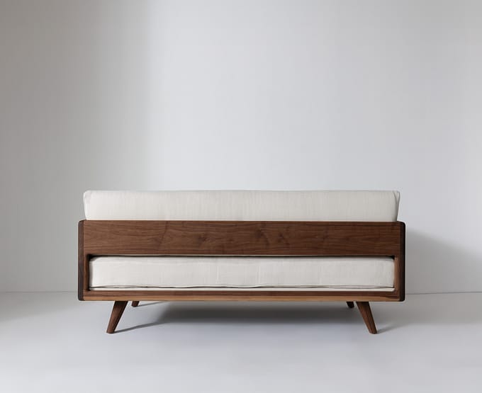 This upholstery set provides a seat cushion and back bolster for our effortlessly versatile Divan Twin. Made from bouclé yarns with a gentle, satin finish and an inviting texture, the set is available in four rich shades: Ink, a midnight blue, Forest, a deep, shadowy green, Plum, a decadent, dark purple and Salt, a softly shaded white. Tightly woven and highly durable, they bring an instant richness of tone and texture to any space. Sized for a twin mattress, the seat cushion is available as a slip cover only or can be purchased with one of our twin mattresses included. Bolster fill is made from the same 100% organic and biodegradable materials as our mattresses. Divan Twin is not included.