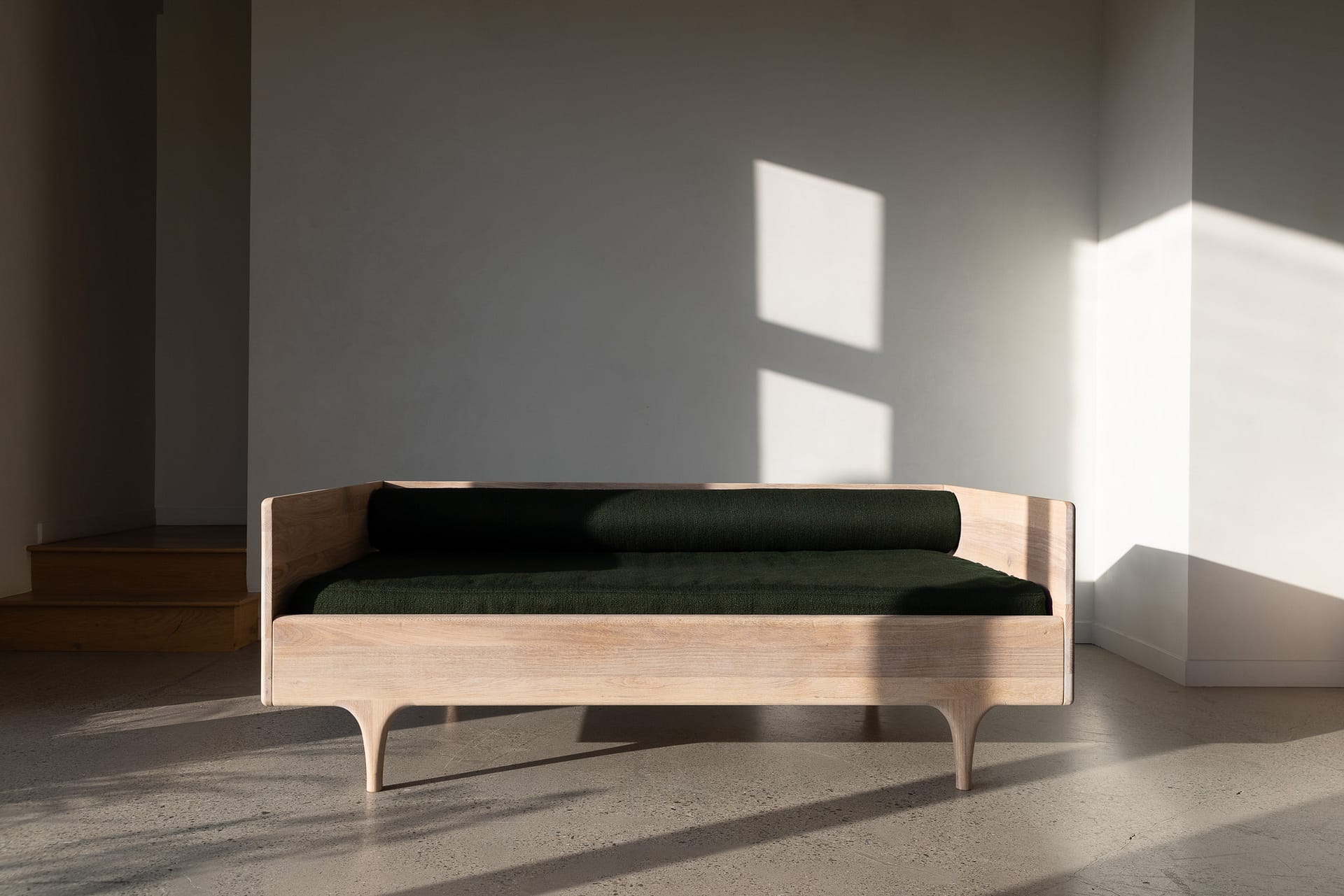 • If mattress inclusion is selected: Flippable, dual firmness mattress made from layers of organic coir and GOLs certified organic, natural latex wrapped in sheep’s wool and organic cotton.
