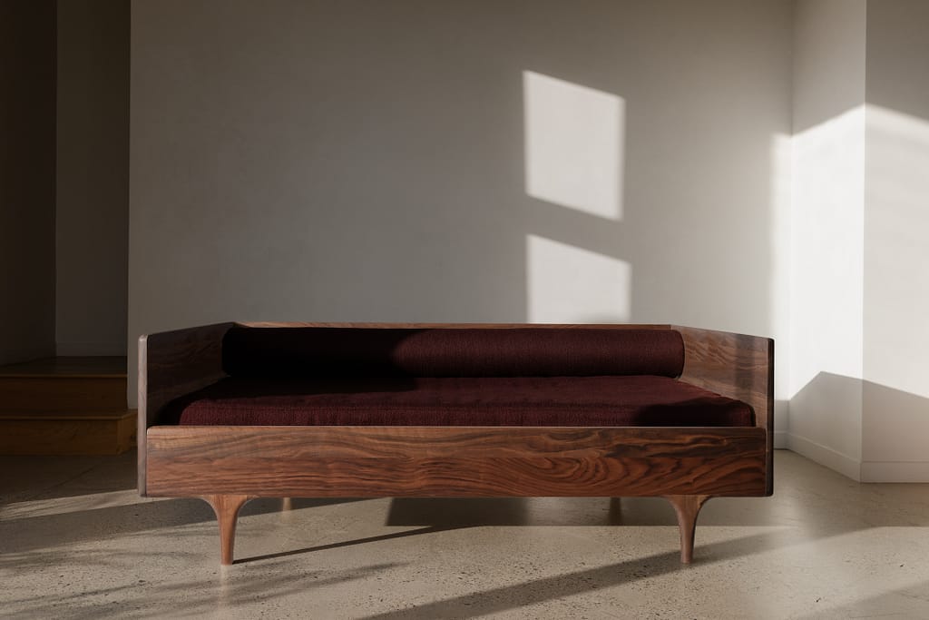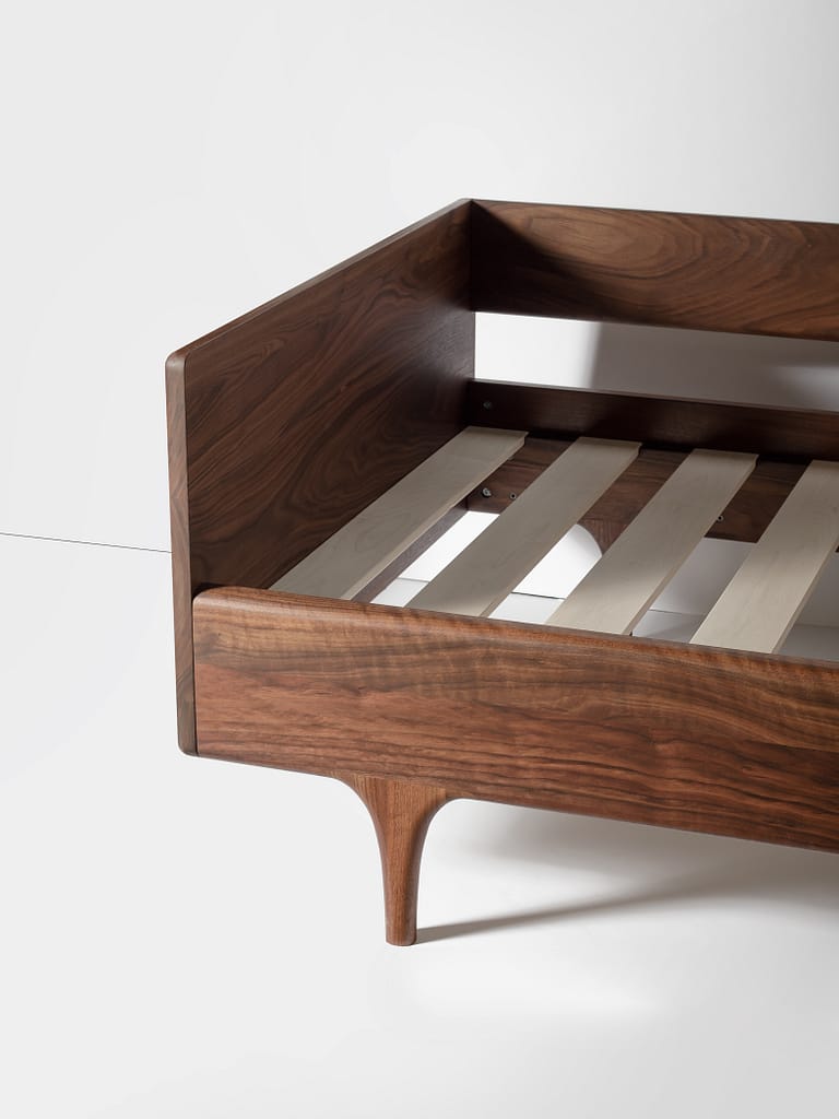 Defined by clean lines and a low, architectural frame, the Divan Twin offers sculptural presence with quiet restraint. Sized for a twin mattress, it functions as lounge, bed, or daybed—equally at home in a bedroom, living space, or guest room. Comfortable yet architectural, its pared-back form adapts seamlessly to any environment. Crafted from solid, oil-rubbed Ash, White Oak, or Black Walnut, the Divan Twin is built by master craftspeople in Pennsylvania. Upholstery options are available.