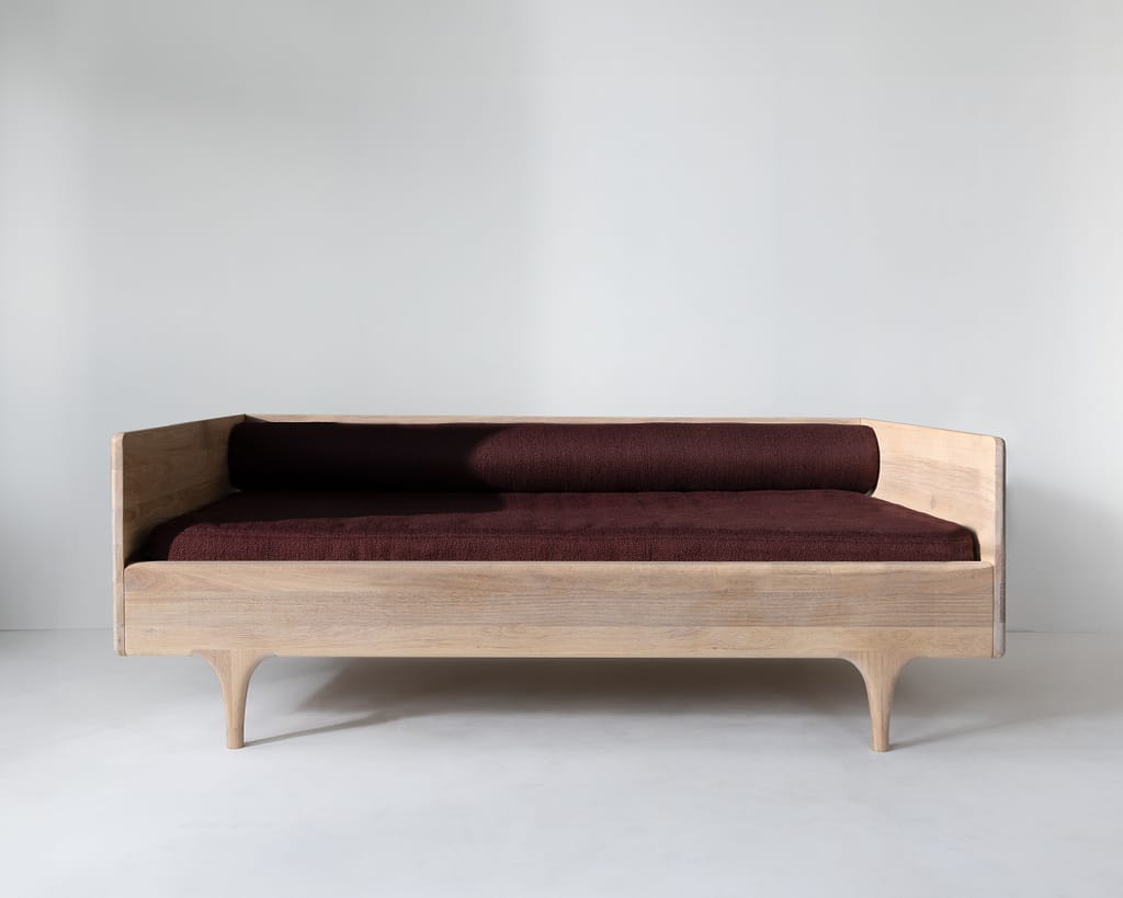 Solid White Oak divan sized for lounging or sleeping. With its pared back design, the Caravan Divan is an effortless and generous piece of contemporary furniture.