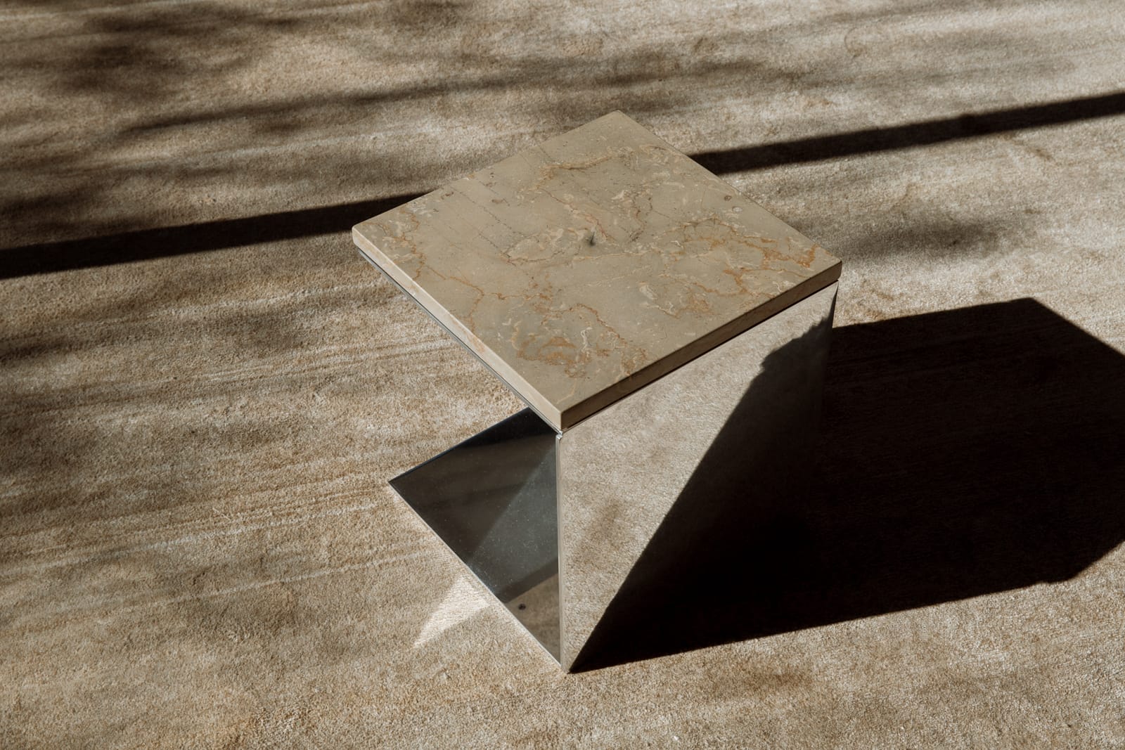 Sized to nest beneath the Coffee Table or stand independently within a room, each cube functions as stool, side table, or sculptural object. Composed, deliberate, and materially distinct, they hold their own presence—whether singular or in series.