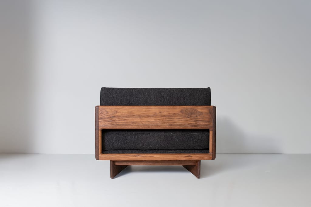 Crafted from oil-rubbed domestic hardwoods, each chair is built to order in the United States and may be specified COM or from Kalon’s curated selection of textiles and wood species.