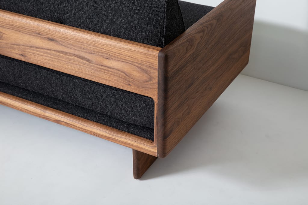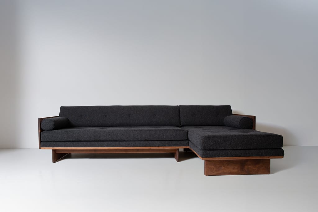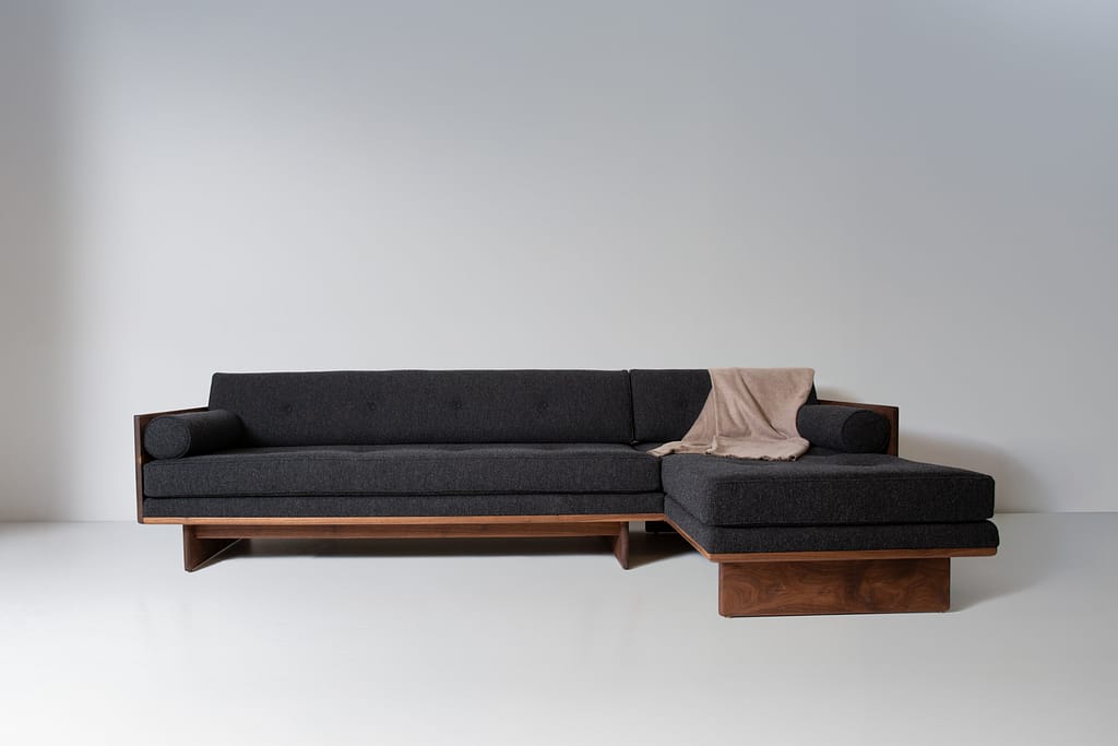 Defined by a low, continuous form and an exposed solid wood frame, the No. 6 Sectional offers generous seating with a composed, grounded presence. Its extended proportions create a natural place to gather while maintaining a sense of openness within the room.